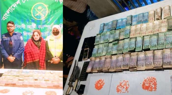 নরসিংদীতে যৌথ বাহিনীর অভিযানে নগদ টাকা সহ নারী মাদক কারবারি আটক
