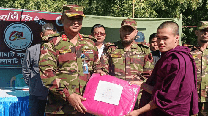 সেনাবাহিনীর উদ্যোগে রাঙ্গামাটিতে শীতার্তদের মধ্যে শীতবস্ত্র ও শিক্ষার্থীদের মধ্যে ক্রীড়াসামগ্রী বিতরণ