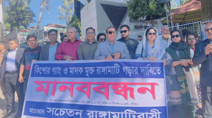 কিশোর গ্যাং ও মাদকমুক্ত রাঙামাটি গড়ার দাবিতে গণ-মানবন্ধন