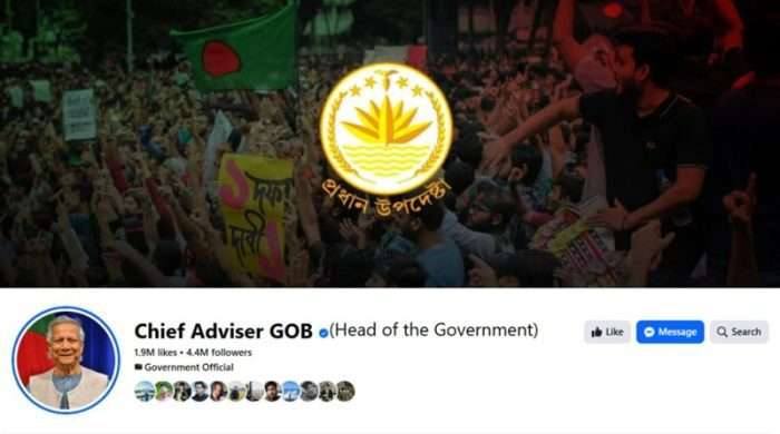 বন্ধ হচ্ছে প্রধান উপদেষ্টার ফেসবুক পেজ