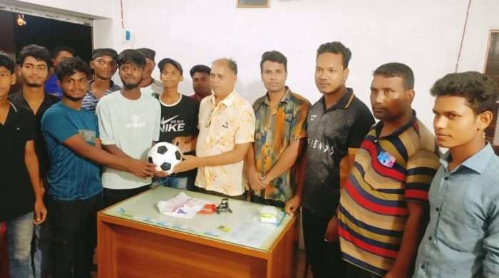 মোবাইল আসক্তি থেকে দূরে রাখতে তরুণ প্রজন্মের মাঝে ফুটবল বিতরণ