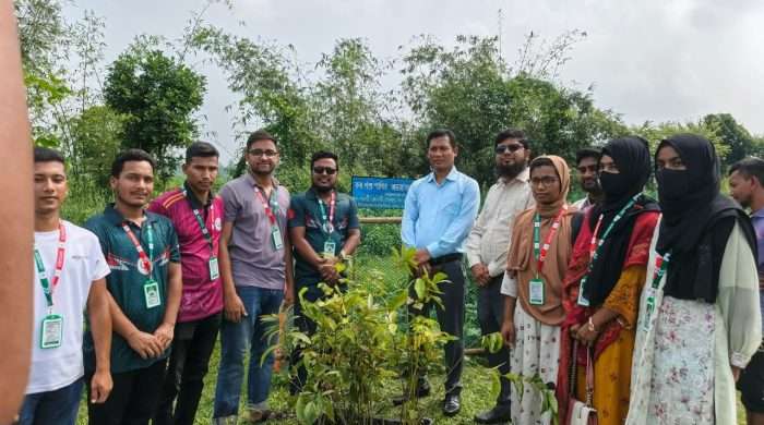 হরিপুরে বন্য পশু-পাখির অভয়াশ্রমে ভেষজ চারা রোপণ।