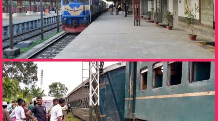 রাজধানীর উত্তরায় সিরাজগঞ্জ এক্সপ্রেস ট্রেনের সঙ্গে কাভার্ড ভ্যানের সংঘর্ষ বগি লাইনচ্যুত, রেল যোগাযোগ বন্ধ