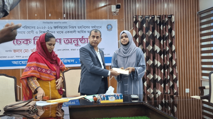 মাগুরা জেলা পরিষদের উদ্যোগে দুস্থ ও অসহায় রোগী ও শিক্ষার্থীদের মাঝে এককালীন আর্থিক অনুদান বিতরণ
