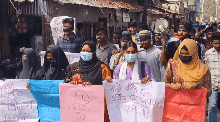 সারাদেশে খুন, ধর্ষণ, নারী নির্যাতন ও ছিনতাইয়ে জড়িত সন্ত্রাসীদের অবিলম্বে গ্রেফতার ও আইনশৃঙ্খলা পরিস্থিতি স্বাভাবিক অবস্থায় ফিরিয়ে আনার দাবিতে পটুয়াখালীতে বিক্ষোভ মিছিল ও মানববন্ধন হয়েছে। বুধবার (২৬ ফেব্রুয়ারি) সকাল ১১টায় উপজেলার কলাপাড়ায় প্রেসক্লাবের সামনে ছাত্র জনতারা মুখে কালো কাপড় বেঁধে এ মানববন্ধন করে।